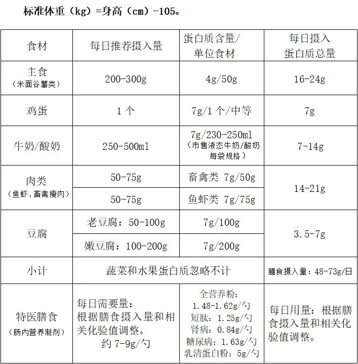 慢性肾脏病患者蛋白质推荐量:0.6~1.0g/(kg.d)。