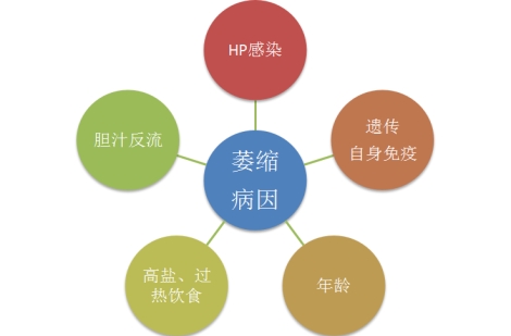 慢性萎缩性胃炎的病因:HP感染、胆汁反流、遗传、自身免疫、高盐、过热饮食、年龄。