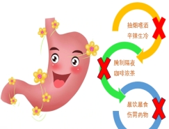 适量补充叶酸、维生素C,戒烟戒酒、避免辛辣刺激生冷油腻食物,少浓茶咖啡、少油炸腌制食物、隔夜食物、避免暴饮暴食、避免服用伤胃药物。