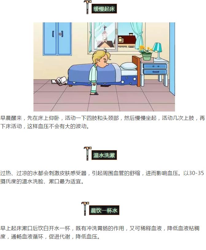 一般来讲,除了高血压危象、高血压脑病需要紧急降压外,其余高血压病人,即使是血压水平较高的Ⅱ、Ⅲ期高血压病患者,也应平稳而逐步降压。血压下降过快、过低,会极易发生脑缺血、体位性低血压等症状。另外,有的高血压病人,常将每天最后一次吃降压药的时间放在临睡前或仅在临睡前服一次降压药,这种做法是不科学的,也是很危险的。