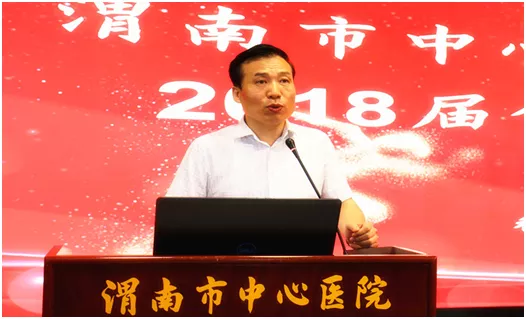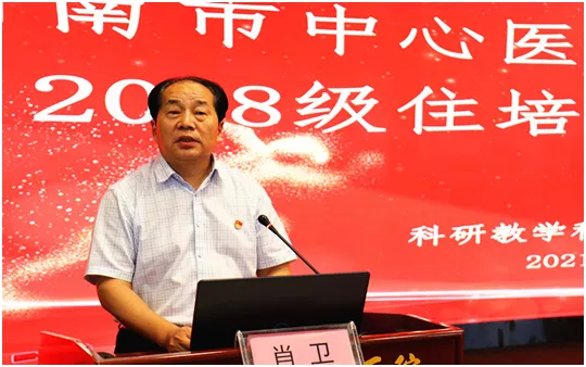 副院长乔梵向圆满完成学业的2018级住培医师表示祝贺,同时向所有带教老师的辛勤耕耘表示感谢。希望各位住培医师不忘初心,坚持梦想,将孜孜不倦的学习精神传承下去。同时指出,作为一名年轻医生,要以提高群众健康水平为己任,不断奋斗,服务人民,争取成为一名德艺双馨的优秀医务工作者。