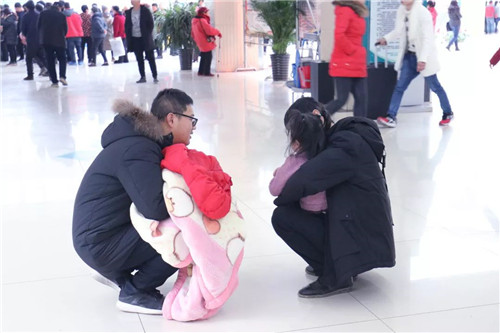 父亲在孩子抽完血后,迅速抱着孩子离开现场,