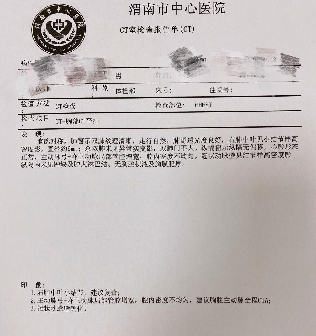 11月16日,王先生来渭南市健康管理中心进行一年一度的常规健康体检,当时无任何不适。当天下午16时40分,“中心”接到CT—MR影像科电话报危急值,王先生CT检查提示:疑似主动脉夹层,“中心”立即启动《危急值管理》流程,迅速处理。