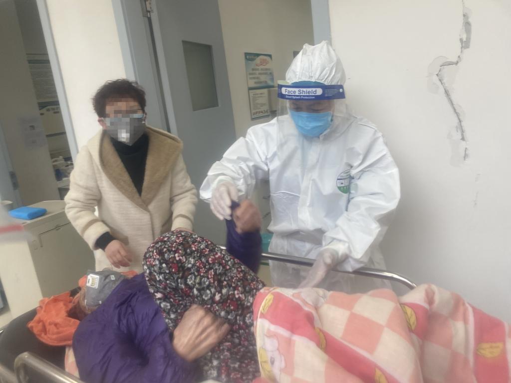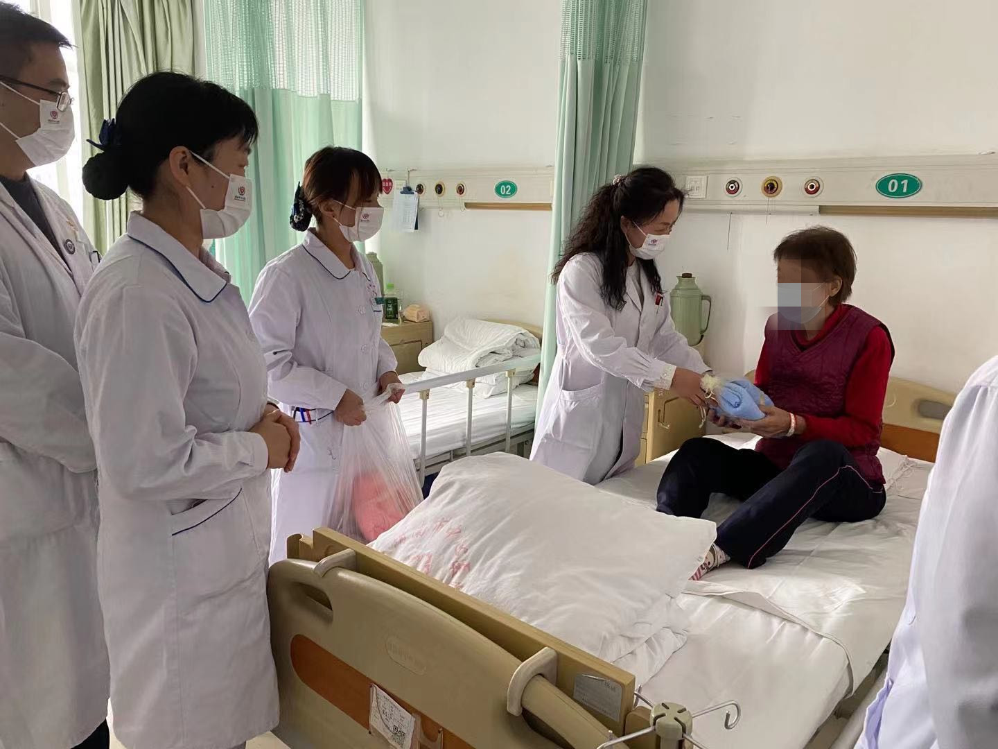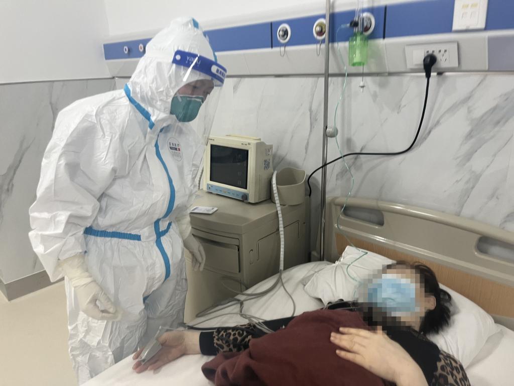 一位来自高风险区85岁的晏奶奶,冠心病、高血压、严重的低钠血症、臀部血肿,老人行动不便,体重大,病情重,烦躁,女儿一人照顾,情绪亦很急躁。护士长向刘红汇报情况后,刘红随即穿好防护服,进入隔离病房和患者及其女儿询问病情,仔细查体,了解困扰患者的主要是臀部血肿引起的疼痛,低钠血症引起的乏力,刘红与患者进行深入交流,给患者调整治疗方案,加强护理。患者终于转危为安,7天后患者满意地出院了。“以后看病还找你刘医生,你知识全面,对病人耐心、细心”,晏奶奶的女儿说道。