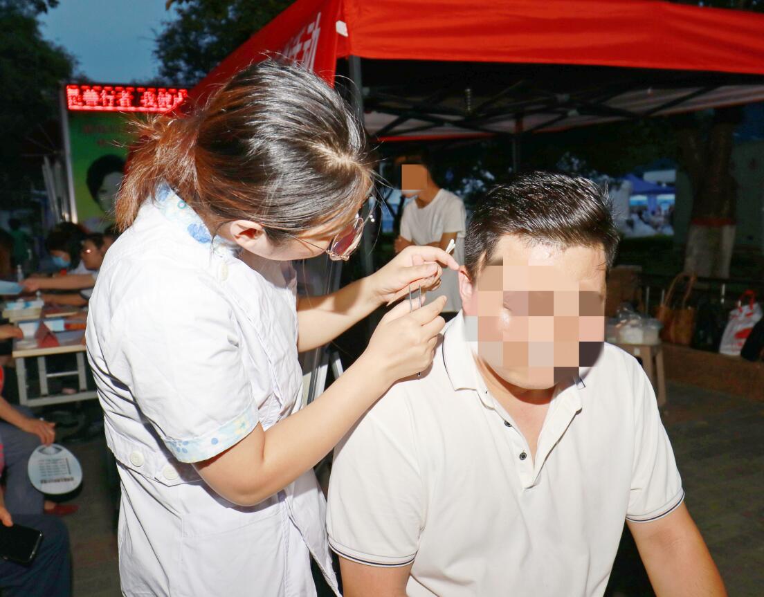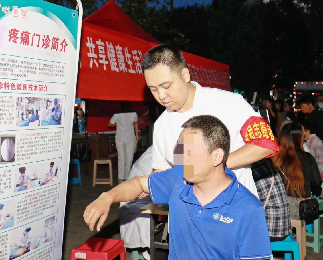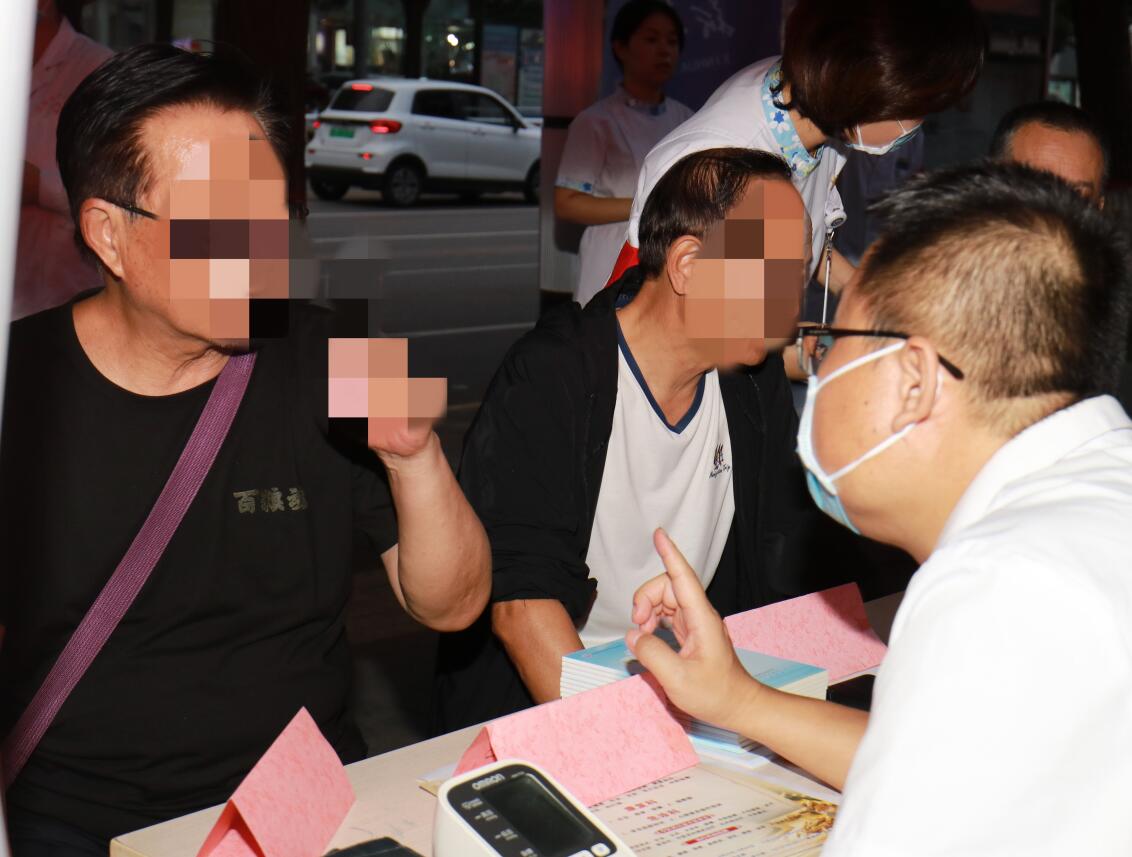 9月1日第一场“惠民夜市”刚开张,就有不少市民来到现场咨询问诊,中医科、康复科专家们为前来问诊的市民提供健康咨询、用药指导、宣传中医养生……现场热闹非凡,医护人员有条不紊地忙碌着,耐心地与市民进行一对一健康咨询解答,并免费为市民测量血压、中药贴敷、耳穴压豆、浮针、推拿诊疗等服务。医院专家们变身夜市“摊主”,为广大群众送上健康服务。