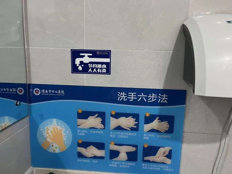 宣传活动现场,后勤主管领导张亚峰带领工作人员通过在门诊大厅摆放节能宣传展板,发放宣传彩页等方式进行宣教,宣传节能降碳和绿色发展理念,倡导践行绿色低碳生活方式。同时,在门诊大厅LED屏投放节能宣传片,重点宣传节约用水行为规范,在医院公共区域、宣传栏等患者和医务人员来往各处张贴节约小标识、增放节能降耗宣传单。