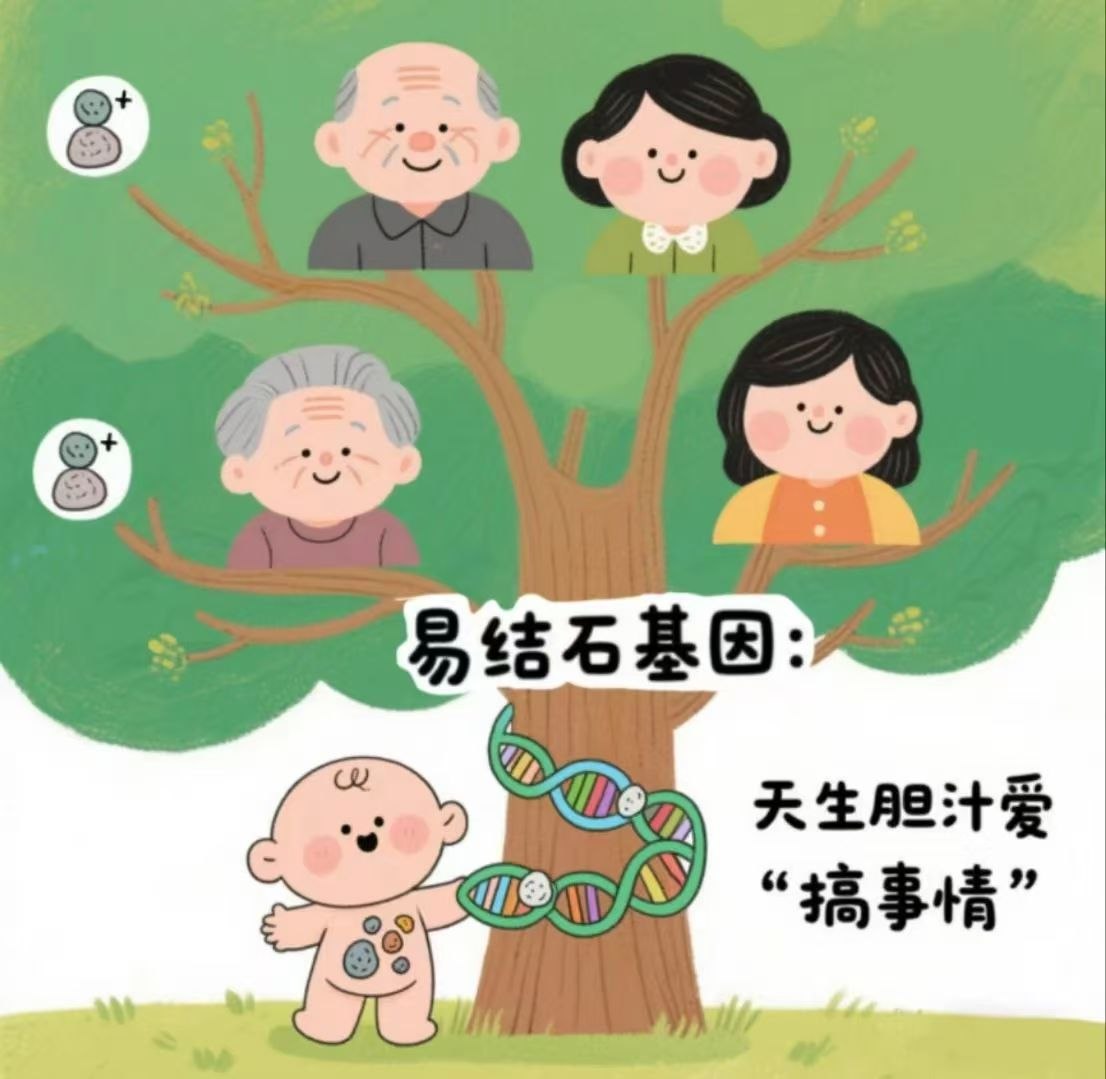 1. 家族中若有人是结石“常客”,没准是遗传的“易结石体质”在捣鬼,天生胆汁就像容易“变味”的饮料,格外容易析出结晶。