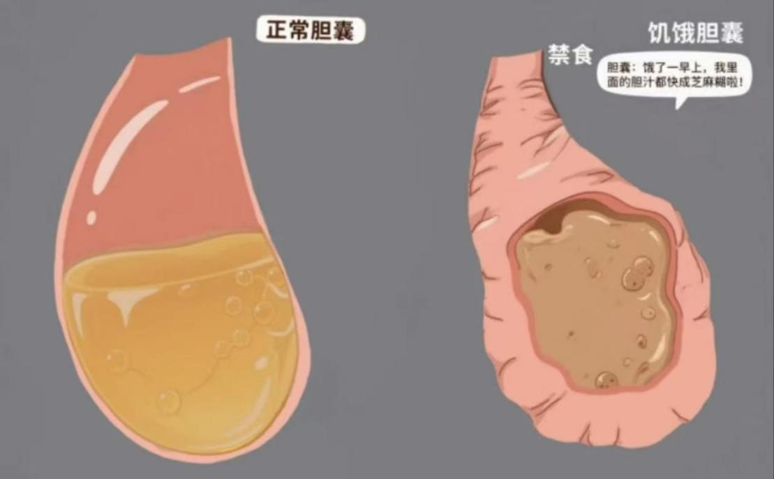 2. 胆囊功能失调:总不吃早餐,胆囊里的胆汁整夜“憋闷”,浓稠得如同放置太久的蜂蜜,极易引发问题。