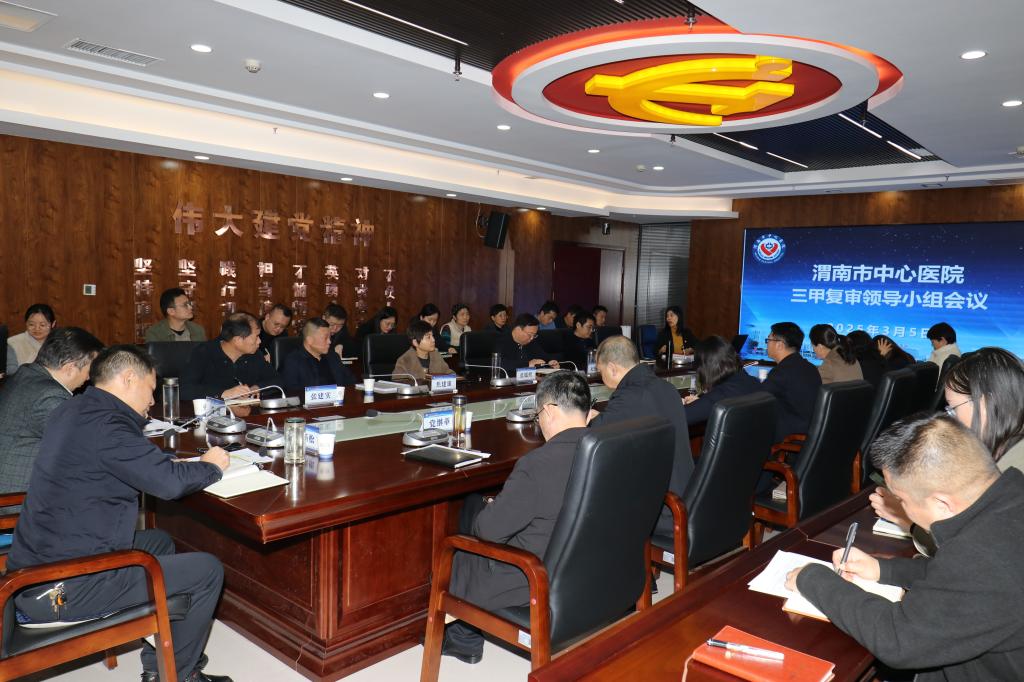 医院领导班子成员、三甲复审领导小组成员及相关职能科室负责人参加会议。