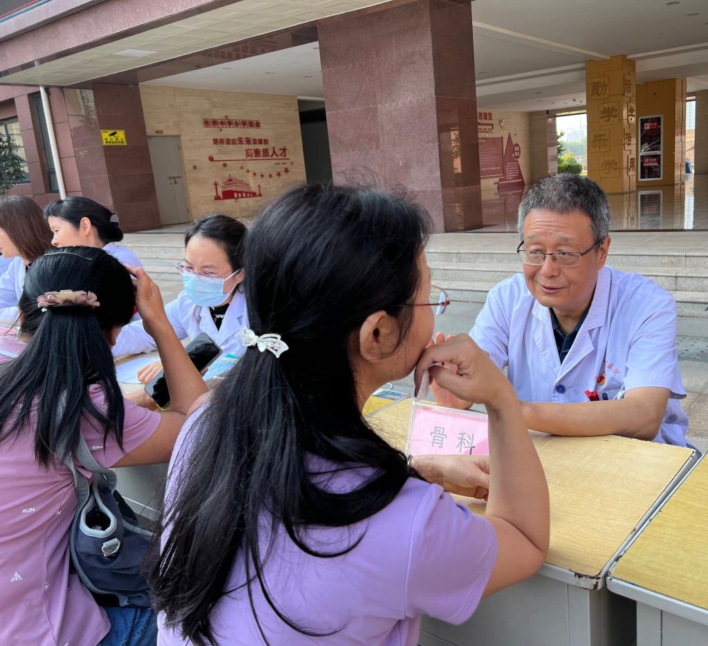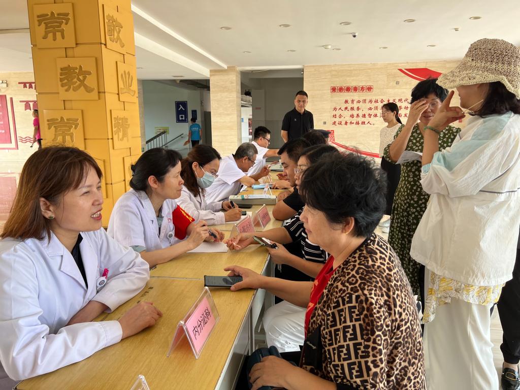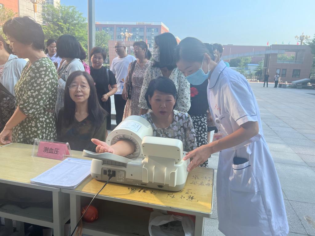 义诊现场,内分泌科、眼科、心血管内科等9个科室10名专家为教师们提供一对一诊疗服务,认真、耐心地回答老师们的健康疑问,并有针对性的给予预防及健康管理建议,帮助教师了解自身健康情况,做到疾病早发现、早预防、早治疗。此次义诊活动将优质、有效的医疗健康服务送到教师身边,得到了学校老师们的一致好评。