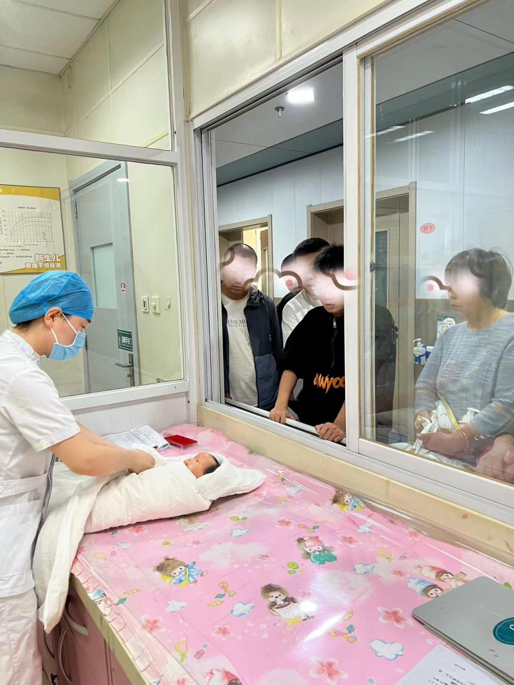 通过微信预约新手妈妈进病房,一对一教会宝妈如何进行“袋鼠式护理”。婴儿通过“袋鼠抱”与母亲皮肤接触可以减少应激反应,促进神经系统发育,还可以增进母婴感情,提升早产儿安全感,增加深度睡眠时间。