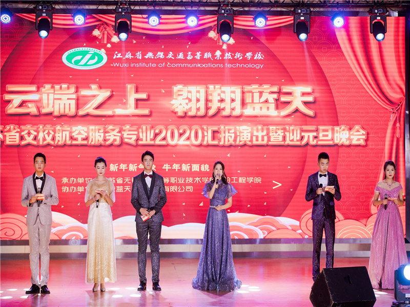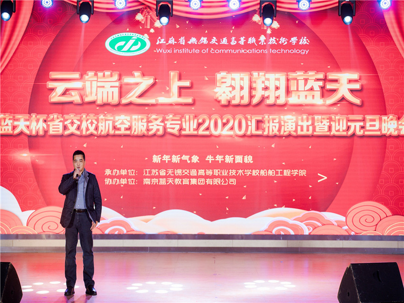 为展示学校航空服务专业学生良好的专业素养和精神风貌,12月9日,学校在大礼堂举办了“蓝天杯”航空服务专业2020汇报演出暨迎元旦晚会。学校党委书记、校长李虎,泰州职业技术学院党委副书记钟文乐,南京蓝天教育集团董事长朱正华出席活动。本次汇报演出由MILAN.COM船舶工程学院承办,南京蓝天教育集团有限公司协办。学校各处室、院部的领导,教师代表、学生代表以及航空服务专业的家长代表700余人参加了本次活动。活动还特别邀请了泰州职业技术学院以及南京蓝天教育集团的领导和嘉宾。