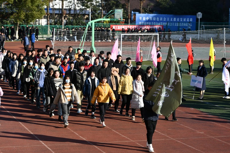 裁判员代表徐斌老师和学生代表吉浩斌同学先后代表裁判员和学生进行宣誓:公平公正守秩序,坚持友谊第一,比赛第二的体育风尚,以顽强拼搏的精神,为趣味运动会添彩! 伴着运动员进行曲的节奏,各学院学子充分展示学院风采。独特的方阵口号、韵律特别的音乐、动感的舞蹈,同学们依次表演展示,带着拿手的“绝招”,在主席台载歌载舞。整齐的动作、亮丽的着装,独具特色的队形和造型、振奋人心的口号,给全场带来一场充满才艺感和创意感的亮相。