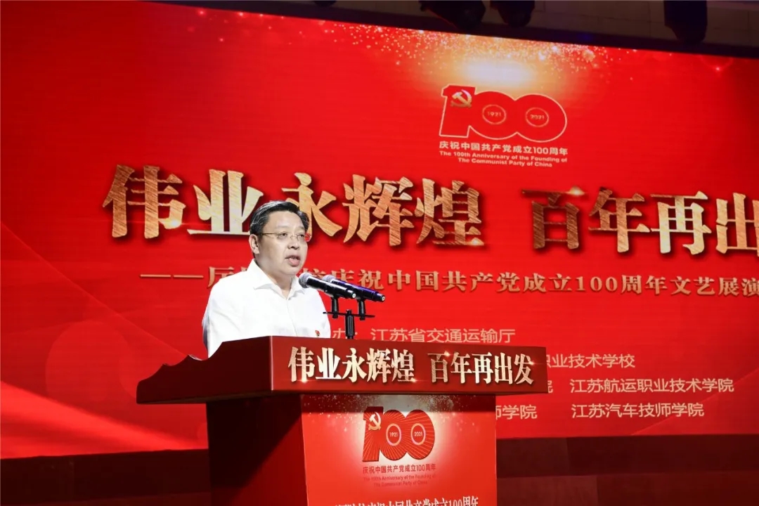 金凌副厅长在致辞中表示,当前,全省需要一批扎根于交通运输、建设、管理、运营、服务一线的高素质技术技能的人员。厅属院校必须把党的成功经验传承好,发扬学校的文化育人工作。引导青年学子从党史中寻找开拓进取的行进方向,从党史中夯实理想信念。金凌副厅长要求要重视交通文化建设,发掘现代交通人的爱岗敬业,敢为人先,勇攀高峰的事迹,大力弘扬劳模精神,劳动精神,工匠精神,引导青年学子树立积极向上的价值观,让每位学生都有机会接受美育。要加强第二课堂建设,依托学生社团开展格调高雅的校园文化,让学生在了解美,感受美,欣赏美,表现美,创造美的过程中感受文化的魅力。金凌副厅长强调,在两个百年的交汇点上,要对照争当表率的要求,全面提升办学水平、服务能力和国际影响力,为我省努力打造交通运输现代化建设示范区,培养更多又红又专的技术技能人才,为江苏交通在强富美高新江苏建设中更好贡献交通学校的力量。