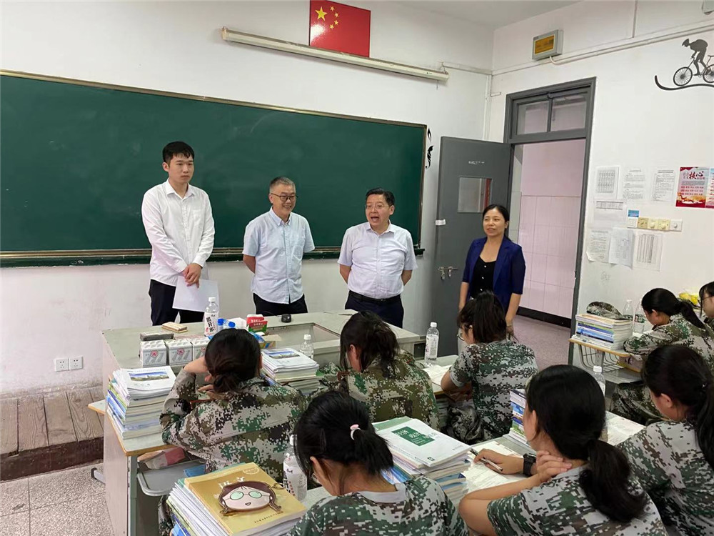 随后,李书记在学院领导、班主任的陪同下,检查学院教学楼准备工作,来到新生班级,看望新同学,同学们对李书记的到来表示热烈欢迎,李书记对同学们表达了诚挚的问候,与同学们进行了亲切的交流,询问了各位同学来到学校后生活、学习以及军训等情况,勉励同学们要树立远大理想,锤炼品德修为,练就过硬本领,以崭新的姿态迎接新的挑战,追逐最初的梦想,不辜负自己、家长和国家,实现自己的梦想,在军训中服从命令,听从指挥,精诚团结,练出本领,训出风采,乘风破浪,不断成长。