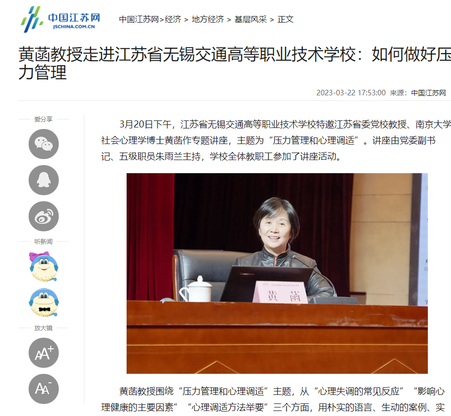 黄菡教授走进MILAN.COM:如何做好压力管理_中国江苏网 (jschina.com.cn)