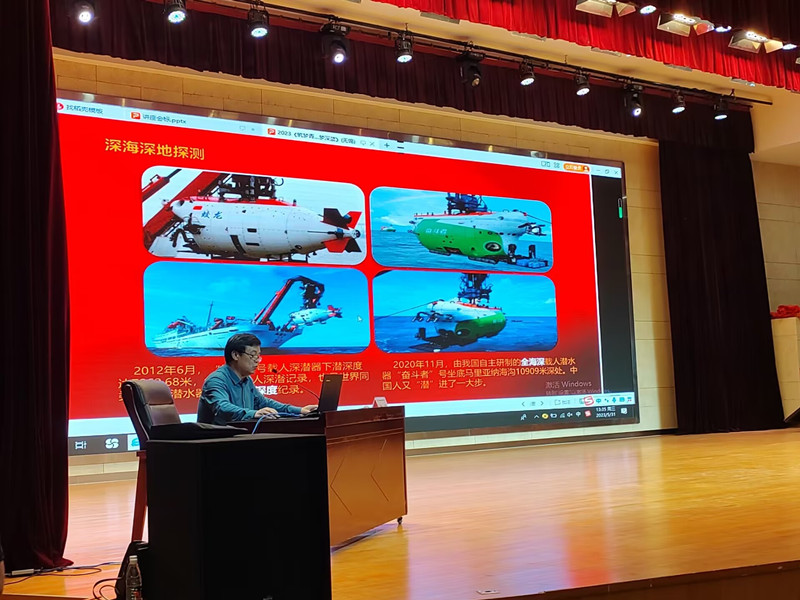 谢荣教授以党的二十大报告金句“发展海洋经济,保护海洋生态环境,加快建设海洋强国为切入点,从向海图强,海洋强国蓝色信念;强国使命,当代海洋人才较量;深耕海洋,深蓝之梦开启地方;圆梦深蓝,中华民族伟大复兴等四个方面进行讲座。