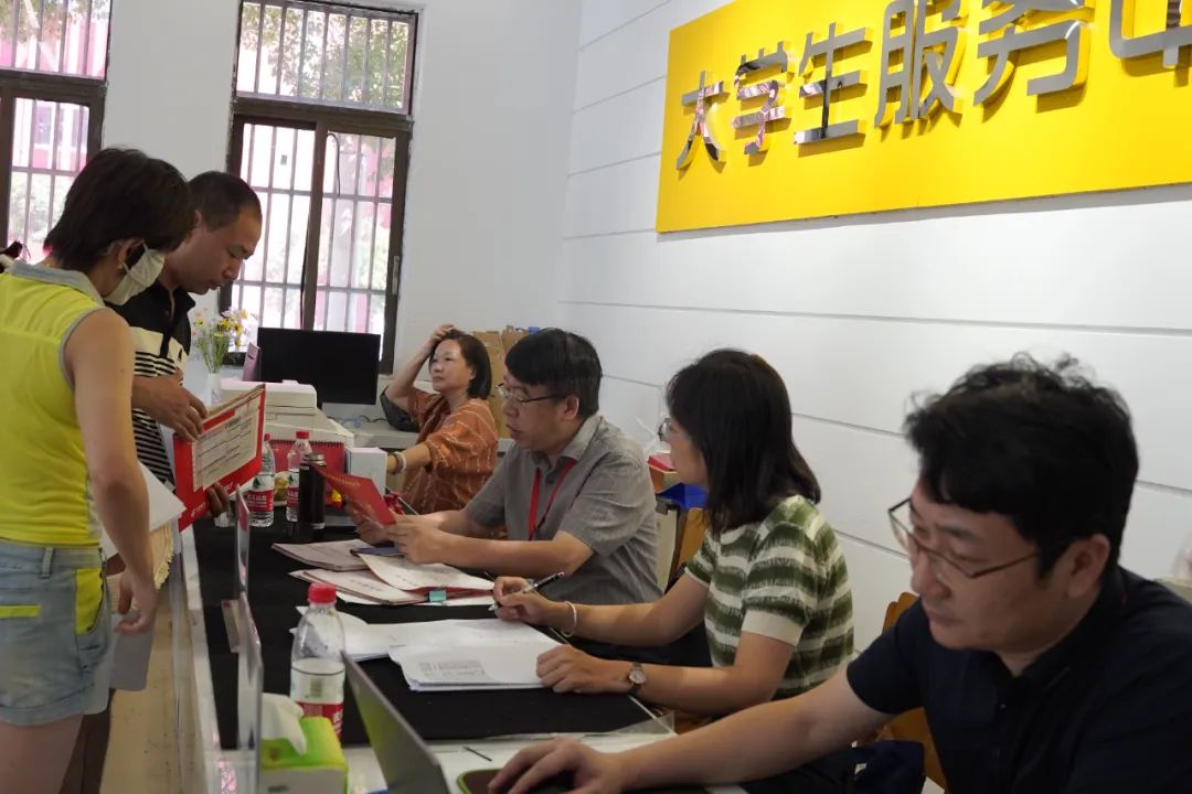 萌新们和父母一同走进学校,迎接他们的是交校老师和志愿者们温暖的笑脸。志愿者们身着志愿马甲在校园里穿梭,为家长和学生带来最热情和最贴心的服务体验。在报到现场,新生们根据指南找到各自学院和班级,他们与辅导员和班主任第一次见面共同开启校园新生活。
