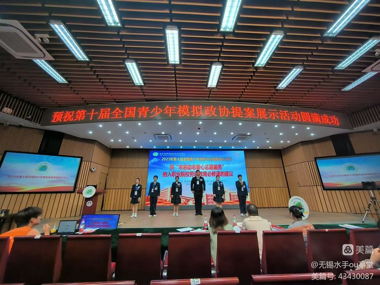 2023年第十届全国青少年模拟政协活动在北京101中学举行,有105所来自全国各地学校参加了展示,在8月5日-8月10日五天活动中,经过模拟新闻发布会、界别小组讨论、提案展示、文艺晚会等环节,碰出智慧火花、沟通了青少年友谊,精彩纷呈。今年展示新增了职业院校和内高班成员,我校是此次全国模拟政协提案展示活动来自职业院校两个学校之一。
