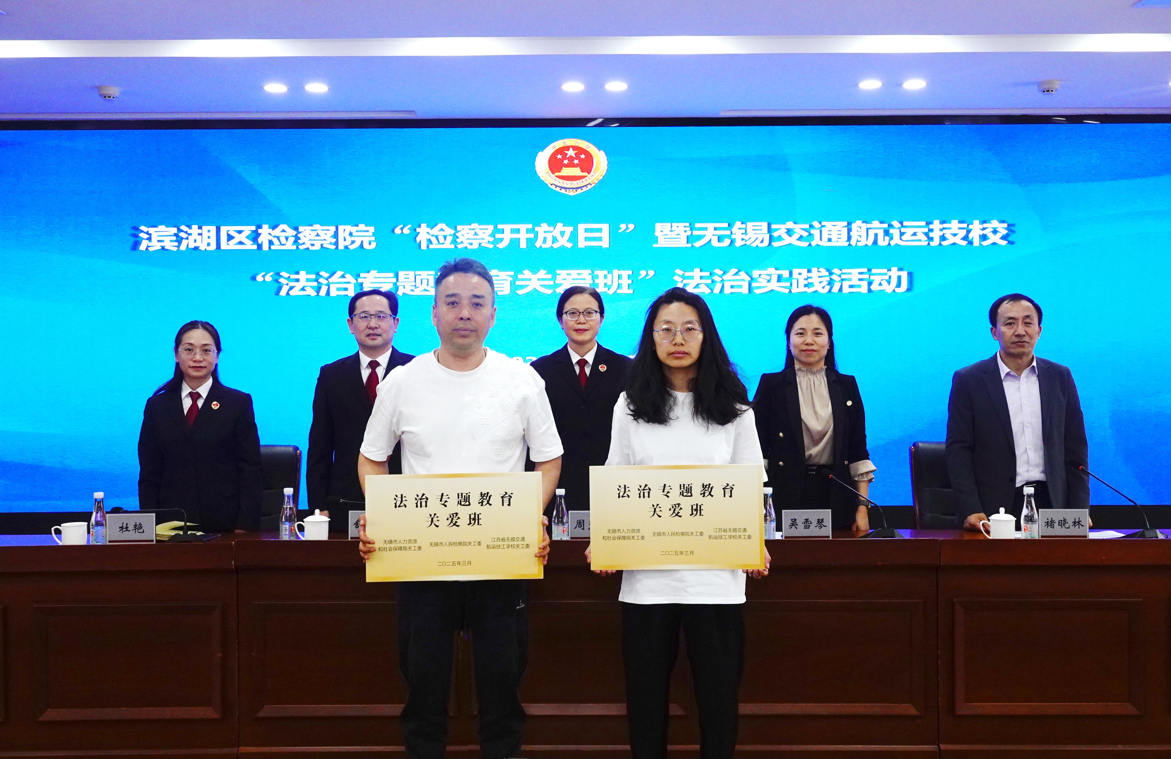 吴雪琴在致辞中,期望检察院持续为青年学生提供学法、用法指导,鼓励学生积极学习法律知识,做全面发展的时代青年。周慧娟与舒广权共同为学校“法治专题教育关爱班”授牌,学校班主任教师顾瑞康、王娜老师上台接牌。周慧娟在讲话中表达了对学生的殷切期望,鼓励大家通过活动增强法治素养。