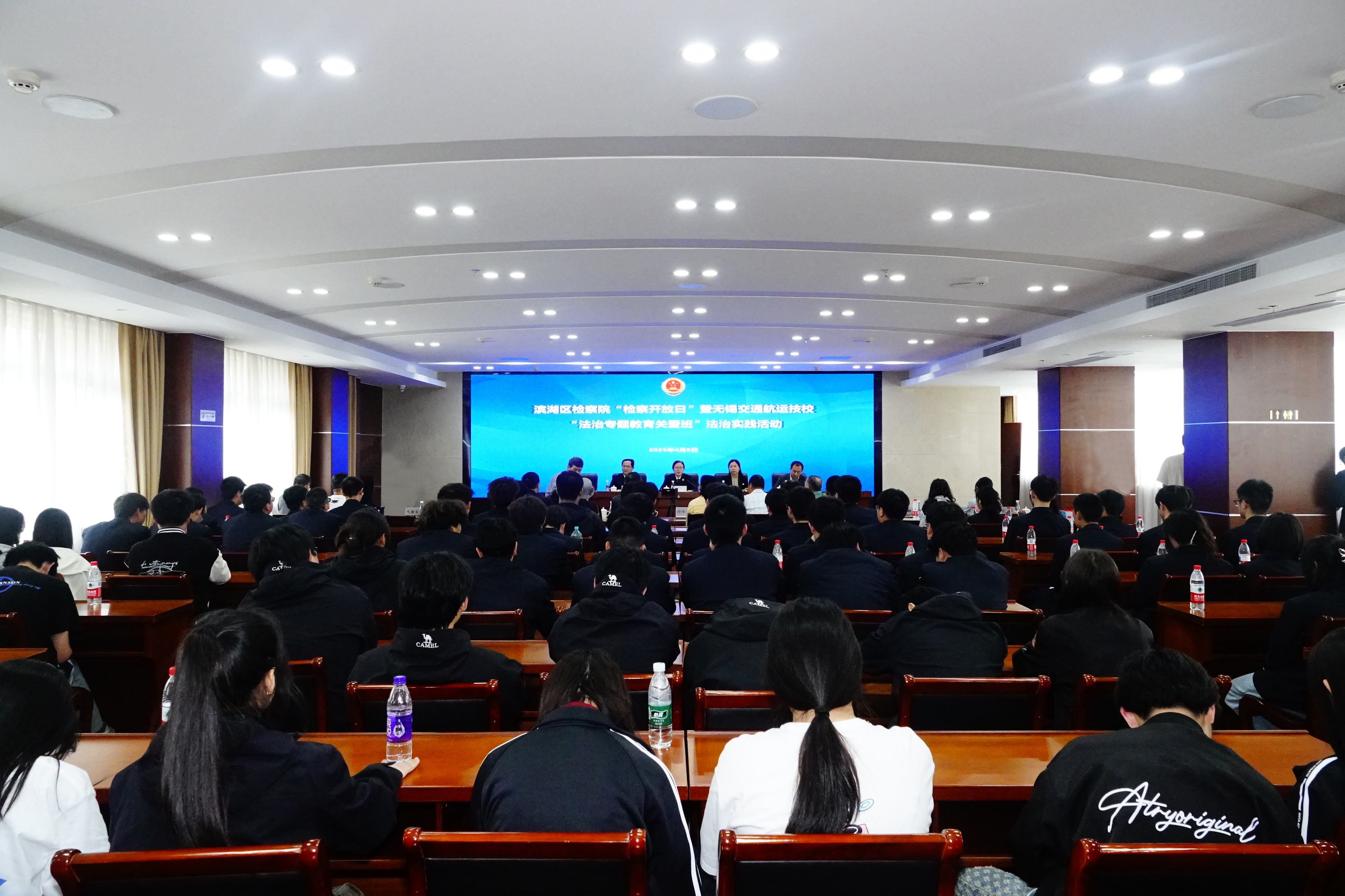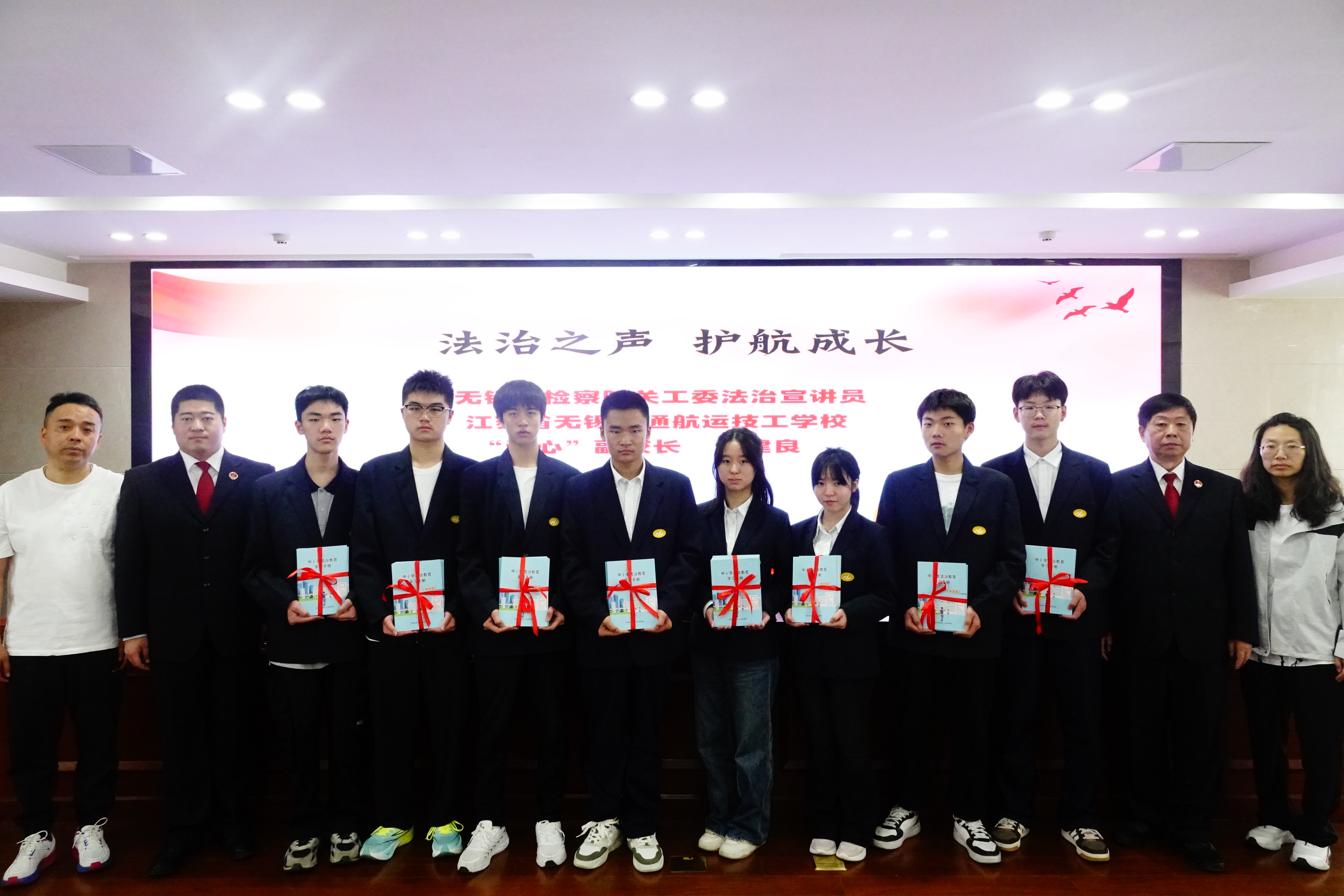 为强化青年学生法治教育,助力青少年健康成长。4月9日下午,“法润心田,护航青春”滨湖区检察院“检察开放日”暨学校“法治专题教育关爱班”法治实践活动,在无锡市滨湖区人民检察院顺利开展。此次活动由学校关工委、无锡市人民检察院关工委、无锡市滨湖区人民检察院关工委联合举办。无锡市人民检察院、三级高级检察官周慧娟,学校党委委员、副校长吴雪琴,无锡市滨湖区人民检察院党组书记、检察长舒广权,无锡市滨湖区人民检察院党组成员、政治部主任杜艳等领导出席活动。