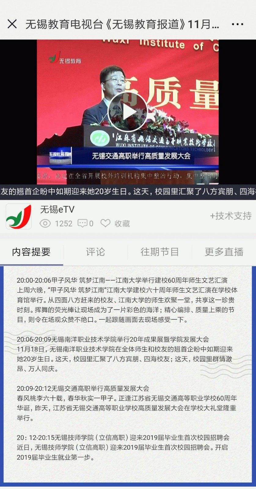 无锡教育电视台《无锡教育报道》报道无锡交通高等职业学校举行高质量发展大会(无锡eTV公众号同步)