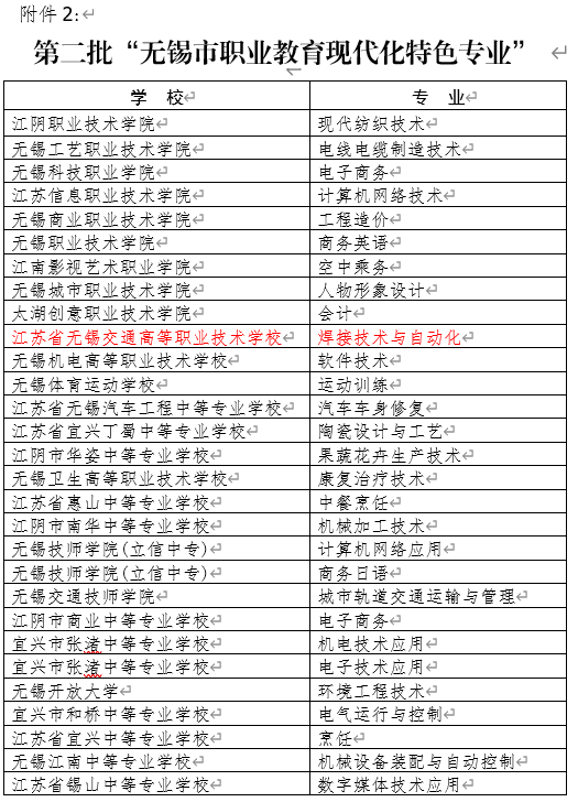 2.第二批“无锡市职业教育现代化特色专业”名单