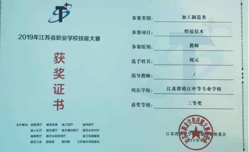 江苏省职业学校焊接技能大赛教师组三等奖