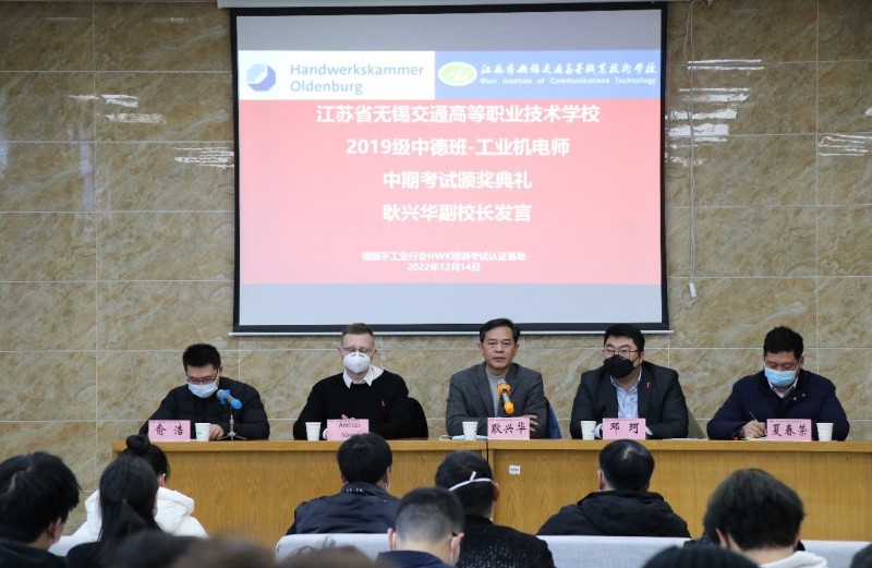为进一步开展好德国手工业行会工业机电师培养项目,不断总结经验和成果,激励同学们将更多的精力投入到项目学习中,机电工程学院与德国手工业行会中国项目办于20221214日下午,在锡澄校区举行了2019级工业机电师中期考试颁奖典礼。学校党委委员、副校长耿兴华,德国手工业行会中国项目办总负责人邓珂博士、机电工程学院院长夏春荣、德国手工业行会教官Andreas Meyer、学院优秀教师、家长代表、全体2019级中德班学生等参加了本次颁奖典礼,会议由机电工程学院副院长俞浩主持。