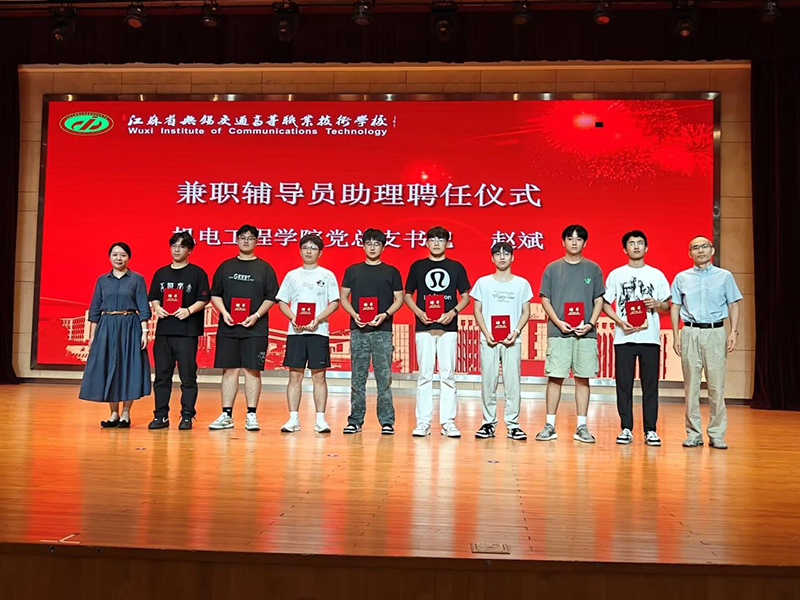 仪式现场还举行了兼职辅导员助理聘任仪式。机电工程学院党总支书记赵斌宣读了聘任决定,并和副院长吕纯一起为受聘人员颁发聘书,各位助理将帮助新生尽快熟悉校园环境、适应学习节奏,为学院营造良好的育人氛围贡献力量。