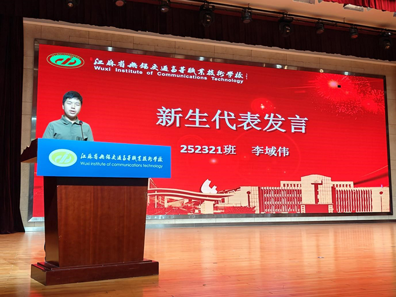李域伟同学代表全体新生随后发言。他表达了对未来校园生活的憧憬与决心,朴实的话语中充满了新生们的朝气与斗志。
