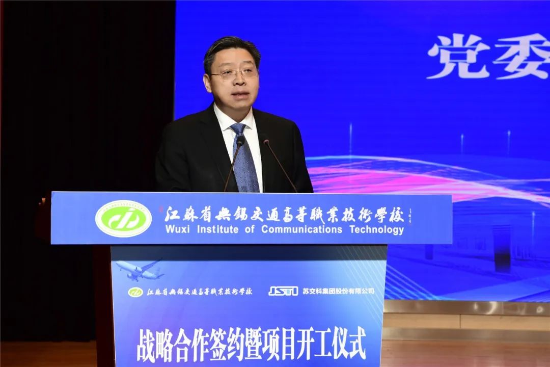 李虎书记在致辞中提出,在深入学习宣传贯彻党的二十大精神之际,学校与苏交科集团开展战略合作,共建生产性交通工程试验检测中心项目,是助力江苏交通运输现代化示范区建设,服务经济社会发展,深化产教融合的重要举措,意义重大。建成后的生产性交通工程试验检测中心项目,将成为交通工程技术技能人才培养的创新平台和服务区域交通工程建设的新阵地,必将成为产教融合、创新发展的一个新标杆、新范式。