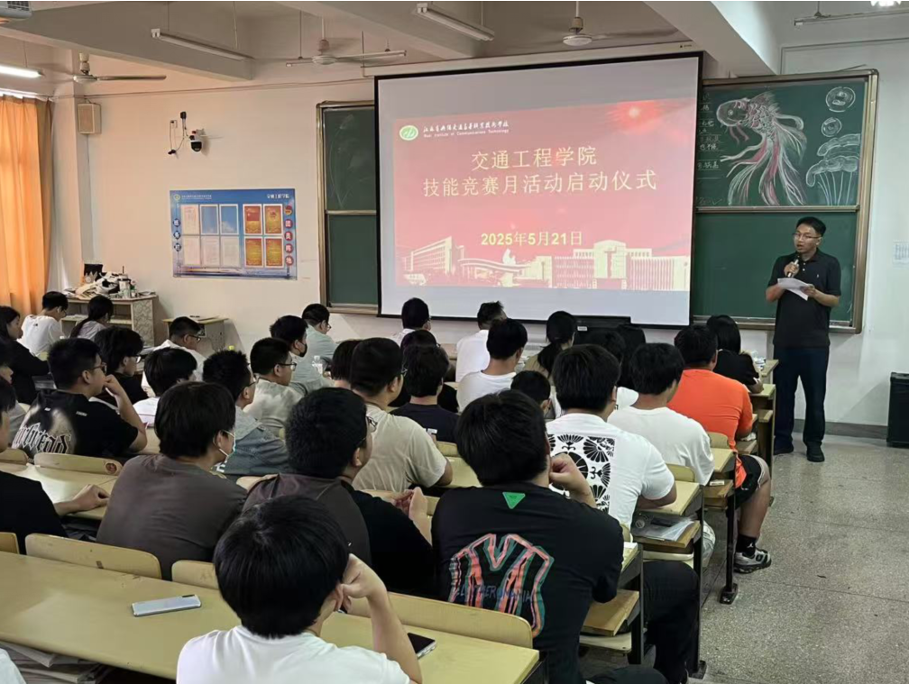 为深入贯彻落实职业教育改革精神,充分发挥职业技能竞赛对技能人才培养的引领作用,进一步在学院营造崇尚技能的浓厚氛围,根据学校《2025年职业教育活动周实施方案》,521日,交通工程学院在弘毅楼512教室举行2025年技能竞赛月活动启动仪式。院长赵巧明、全体指导教师及参赛学生共同出席本次活动,启动仪式由学院副院长袁先明主持。