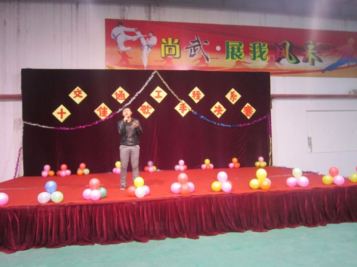 为丰富学生课余生活,努力营造积极向上、健康文明的校园文化气氛,交通工程系“show,我青春”十佳歌手比赛决赛于2013年11月13日在动感活动中心三楼隆重举行。系主任陈建明老师、书记毛兰霞老师、团总支李俊老师、史洁老师、金龙老师、李玉君老师、莫非老师、赵巧明老师以及系学生会主席石明仁同学担任了本次决赛的评委。