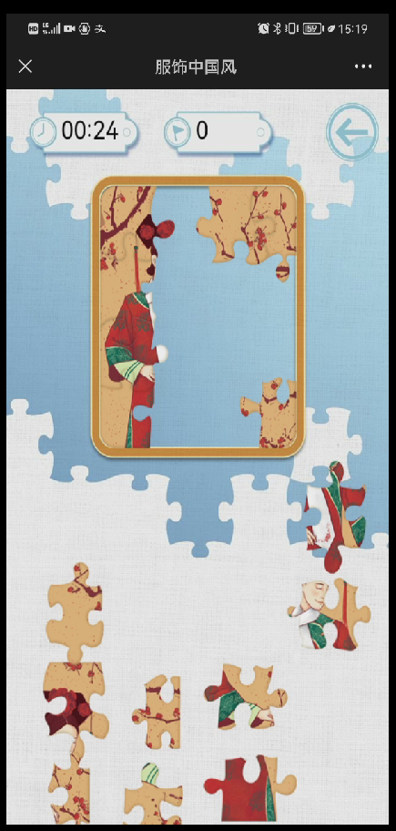 本次线上活动有三个板块:服饰穿越、国风竞答赛、国风绣技。在第一个板块中,一幅幅竖版画展示了唐代、宋代、明代,清代的传统服饰,让社员们重新领略中国不同朝代的服饰特点及变化,充分感受服饰文化的璀璨和丰富多彩。第二个板块中,通过几道知识竞赛题目,让社员们对自己掌握的服饰文化知识有更深入的了解。在第三个板块中,以有趣的动画视频介绍中国绣技的历史发展技法,让社员们了解苏绣、湘绣等传统名绣对中华传统服饰的点睛之用。在线上活动的最后,社员们尝试用最短的时间,修复一张清代传统旗服的拼图。