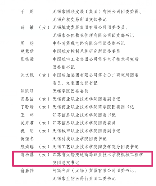 我校MILAN.COM信息管理学院团总支获评“无锡市五四红旗团支部(团总支)”,船舶工程学院181121(41)班李丹凤同学和信息管理学院181612班赵唯一同学获评“无锡市优秀共青团员”,机械工程学院团总支书记翁松露同志获评“无锡市优秀共青团干部”。