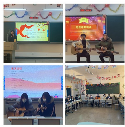 12月31日下午,202711班举办了2021年元旦迎新晚会。晚会在三位主持人欢乐的话语中拉开了序幕,气球和灯笼的相互辉映使全场的气氛迅速升温,节目在同学们美妙的歌声和吉他演奏中相继举行,同学们用真挚的感情演绎着每一个节目。幽默诙谐的小品和搞笑的游戏环节将晚会推向高潮,同学们笑声不断。最终,晚会在班歌<<夜空中最亮的星>>和班主任老师寄语中画上了完美的句号。