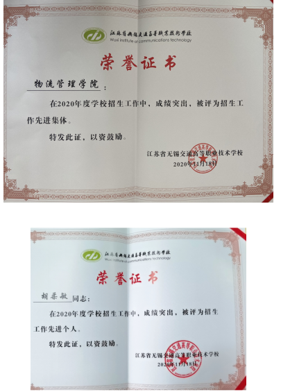 2020年11月18日,在求实楼三楼学术报告厅召开对招生、就业工作先进集体和优秀个人表彰会,我院获评招生工作先进集体,胡柔敏老师获评招生工作优秀个人。在招生就业工作中,我院多次召开党政联席会、全院教职工大会,研究部署招生就业工作,充分发挥和调动各方资源,为招生就业工作做准备,不断凝聚共识,形成合力。据悉,本年度招生工作先进集体,全校共评选5个;招生工作优秀个人全校共评选15人。