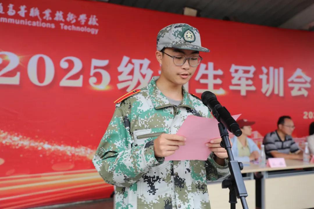 汽车工程学院251531班闫怀戈同学作为新生代表发言。他回顾了军训期间的成长与感动,表示将把军训中收获的毅力、团结和责任感融入今后的学习生活中,不负韶华、砥砺前行。