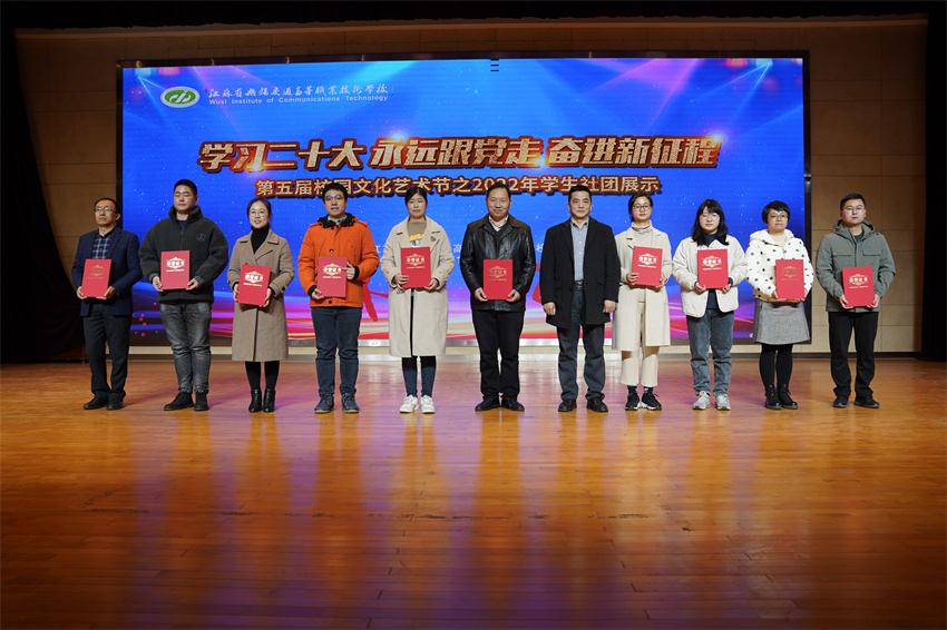 在社团展示活动中,举行了社团指导老师聘任仪式和2021年度优秀学生社团颁奖。校党委书记、校长李虎为指导老师代表颁发聘书,校党委委员、副校长倪依纯为优秀学生社团颁发荣誉证书。