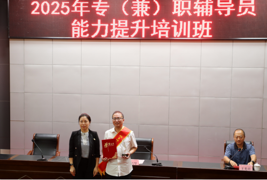 开班典礼上,吴校长作开班动员讲话,并为从事班主任工作满30年的成江老师颁发荣誉证书和奖杯。吴校长指出,班主任和辅导员是学生成长的引路人,更是学校与家庭、社会沟通的桥梁和纽带,希望本次培训能成为所有参训教师自我成长、职业升华的新起点。吴校长勉励所有专(兼)职辅导员以成江老师为榜样,要坚守育人初心,深化责任担当;要注重方法创新,增强育人效能;要聚焦学生成长,提升育人格局,努力成为学生敬重、家长信赖、学校放心、社会认可的教育工作者。