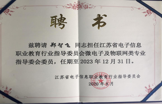 2020年115日,江苏省电子信息职业教育行业指导委员会微电子及物联网专业委员会成立大会暨全体委员会议在江苏信息职业技术学召开,我校信息管理学院郑智飞院长参加成立大会并受聘担任专业指导委员会委员职务