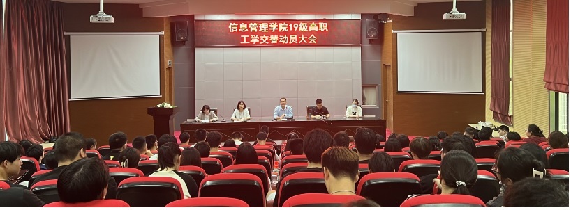 2023年6月5日中午,信息管理学院在学校学术报告厅召开2019级高职班级工学交替动员大会,动员大会由学院院长郑智飞老师主持。
