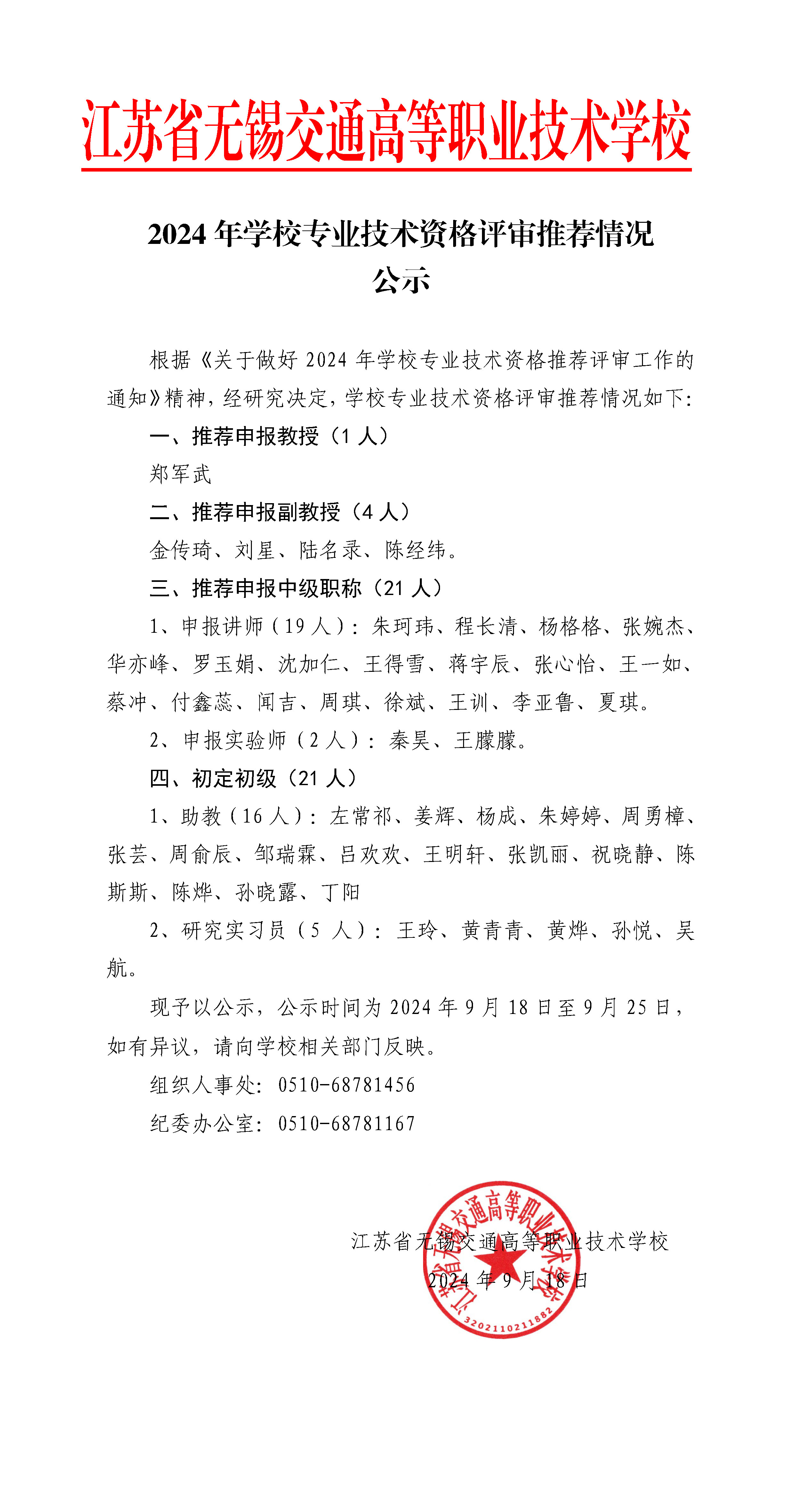 2024年学校申报副高级专业技术资格校内初选入围人员名单公示